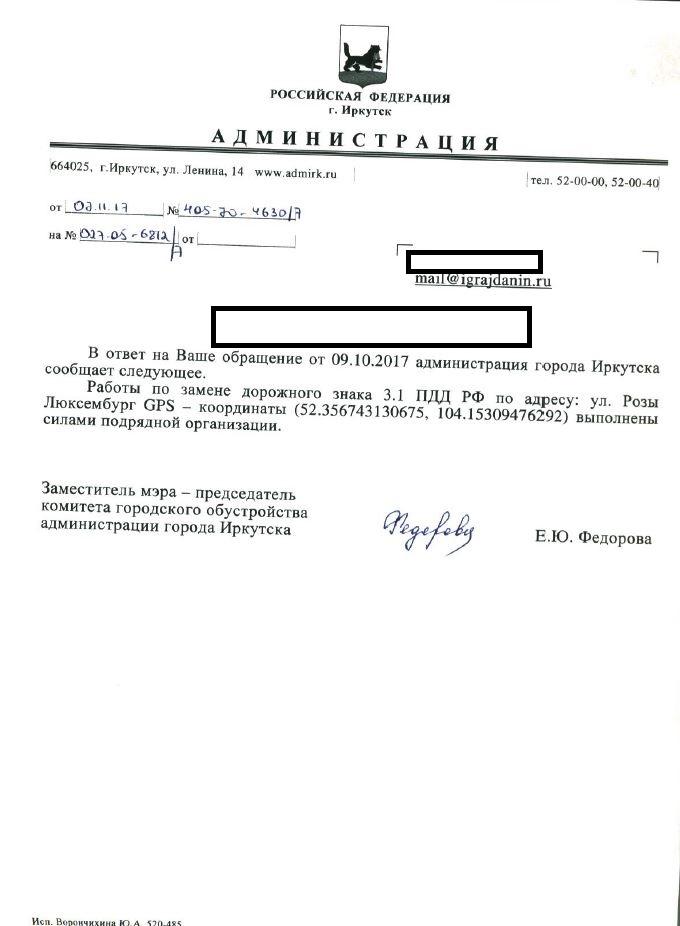 айГражданинОтправлено 06.10.2017: "Администрация города Иркутска"
