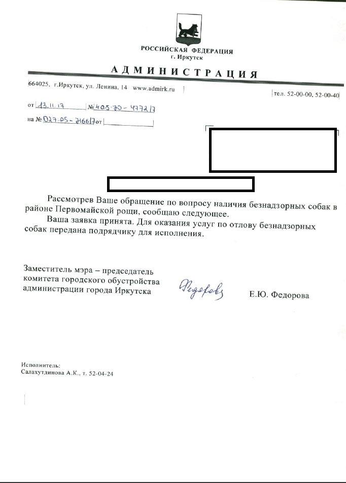 айГражданинОтправлено 23.10.2017: "Администрация города Иркутска"
