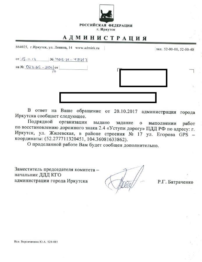 айГражданинОтправлено 19.10.2017: "Администрация города Иркутска"