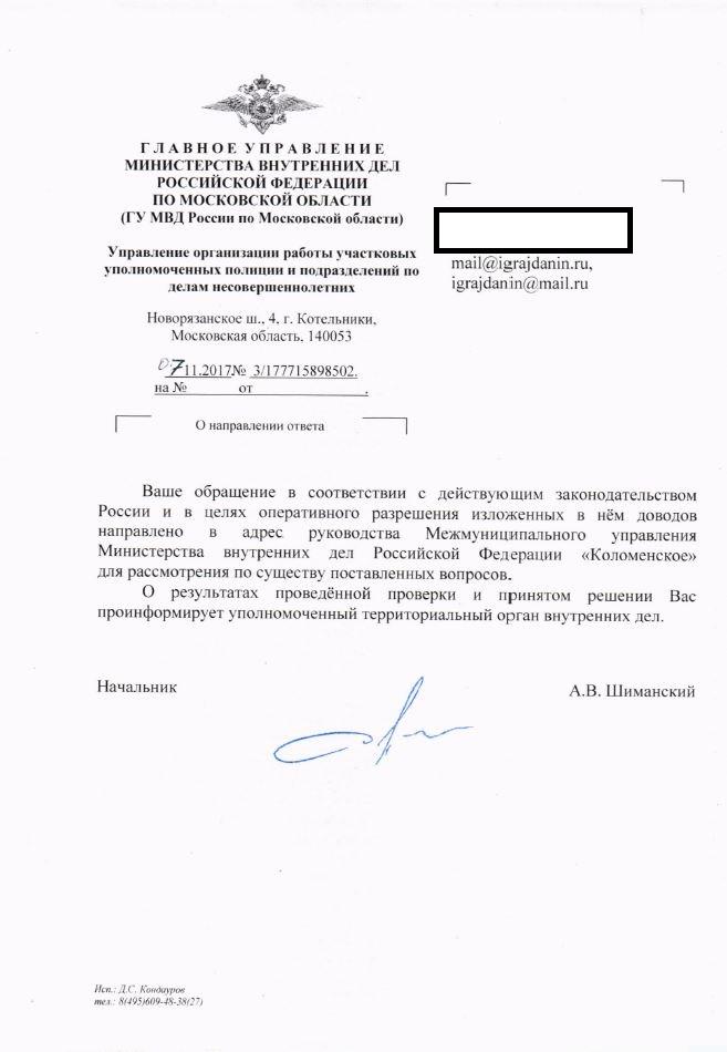 айГражданинОтправлено 31.10.2017: "Главное управление МВД России по Московской области"