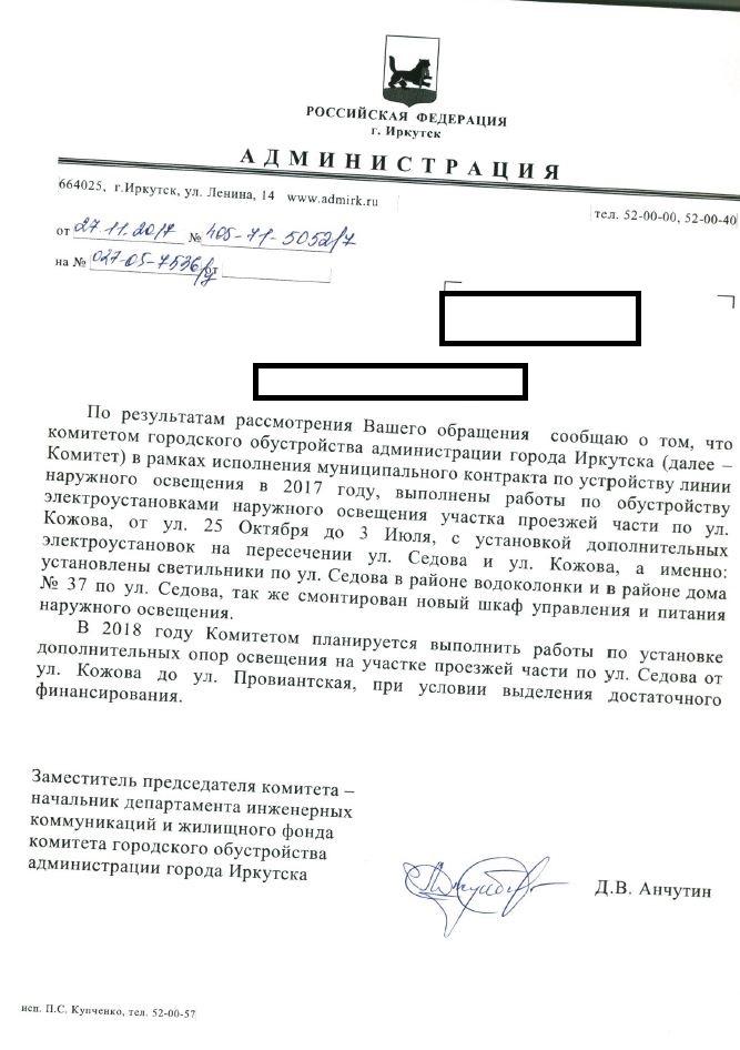 айГражданинОтправлено 08.11.2017: "Администрация города Иркутска"
