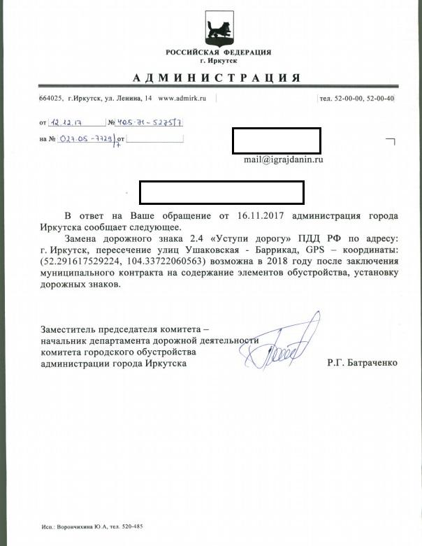 айГражданинОтправлено 16.11.2017: "Администрация города Иркутска"