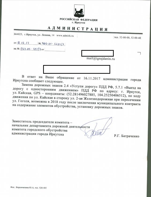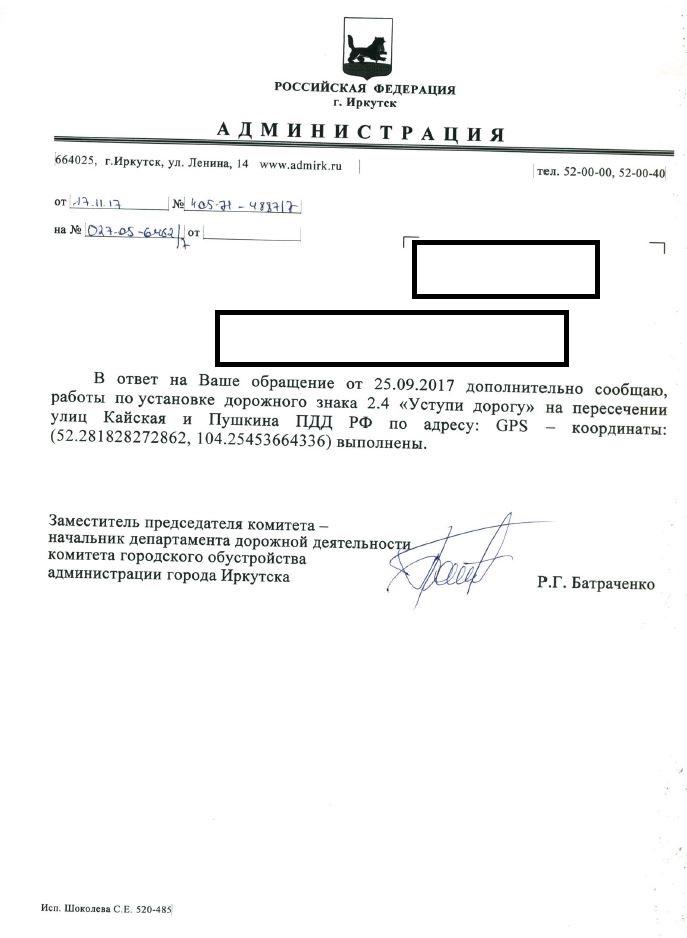 Отправлено 16.11.2017: "Администрация города Иркутска"