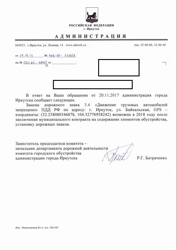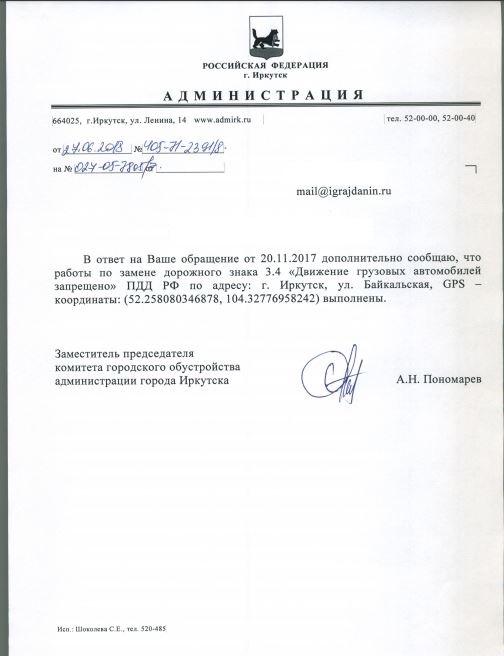 Отправлено 20.11.2017: "Администрация города Иркутска"
