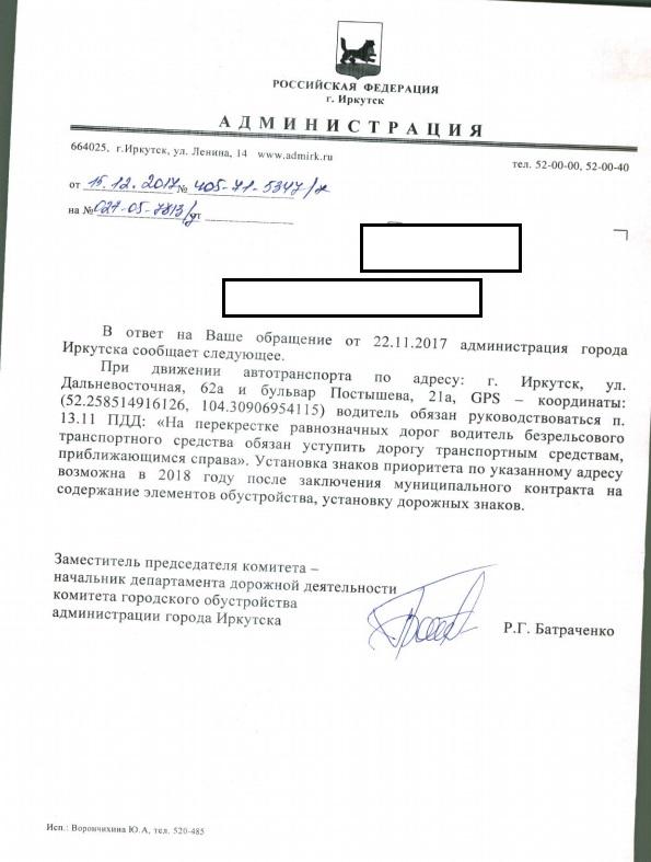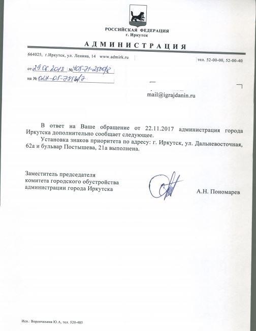 Отправлено 20.11.2017: "Администрация города Иркутска"