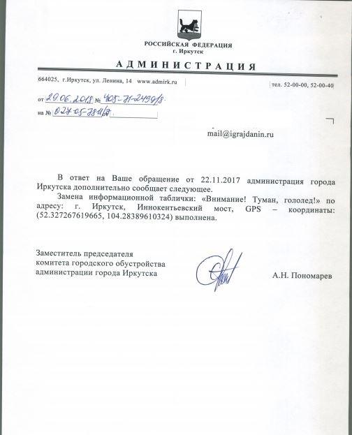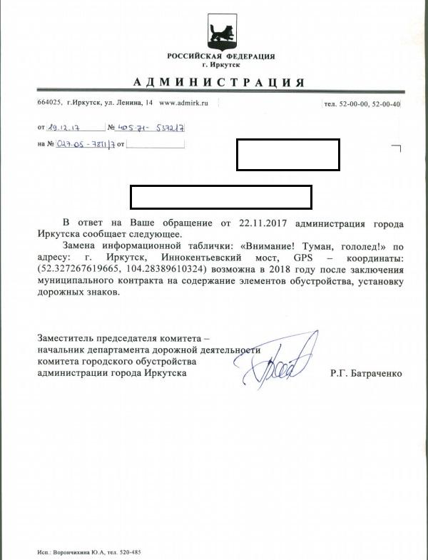 Отправлено 20.11.2017: "Администрация города Иркутска"