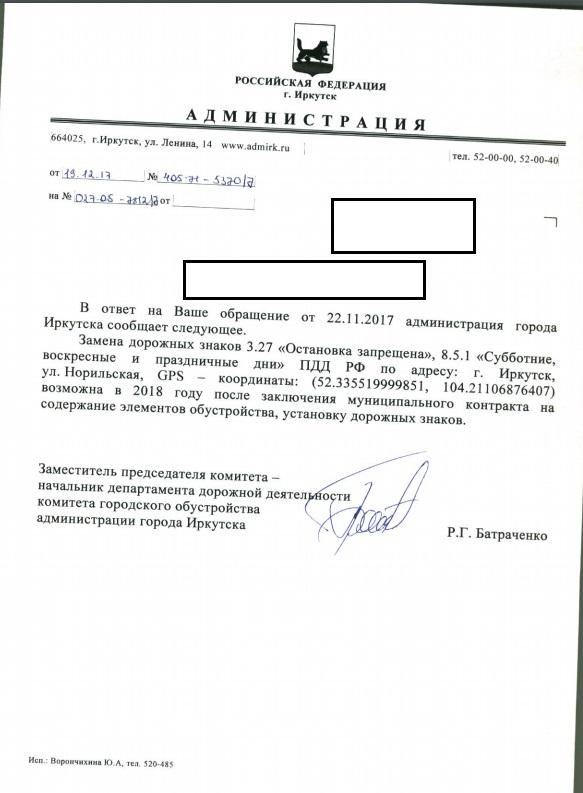 Отправлено 20.11.2017: "Администрация города Иркутска"