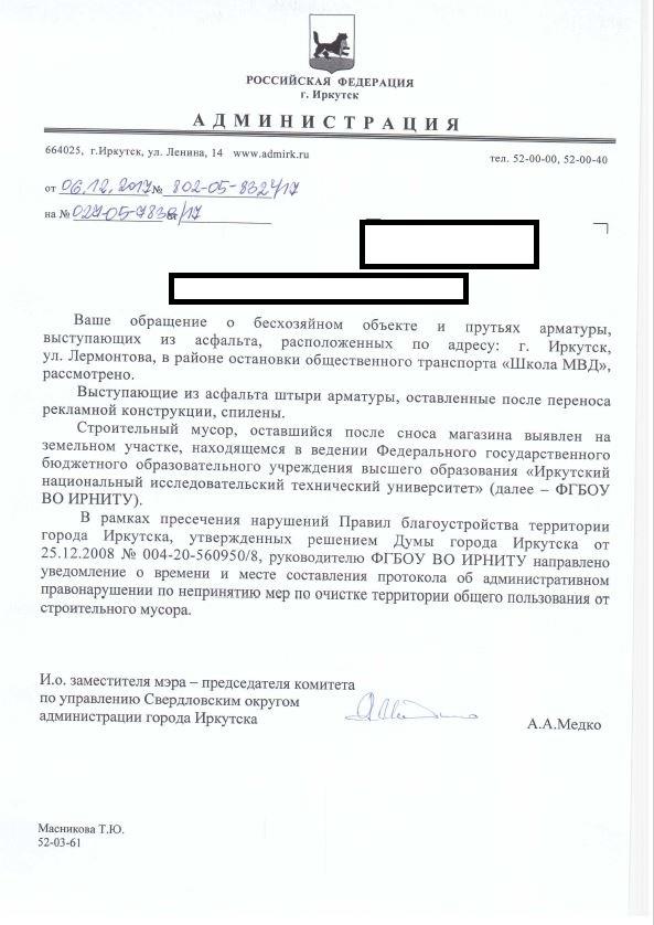 айГражданинОтправлено 22.11.2017: "Администрация города Иркутска"