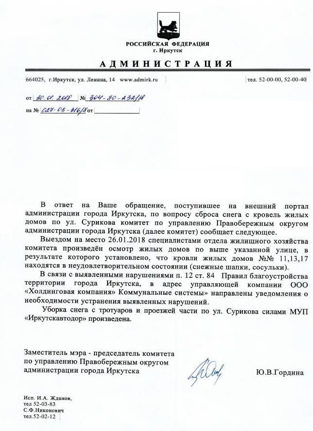айГражданинОтправлено 18.01.2018: "Администрация города Иркутска"
