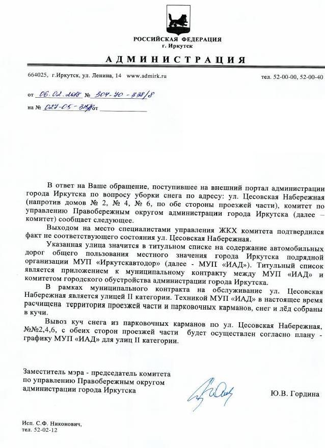 Отправлено 18.01.2018: "Администрация города Иркутска"