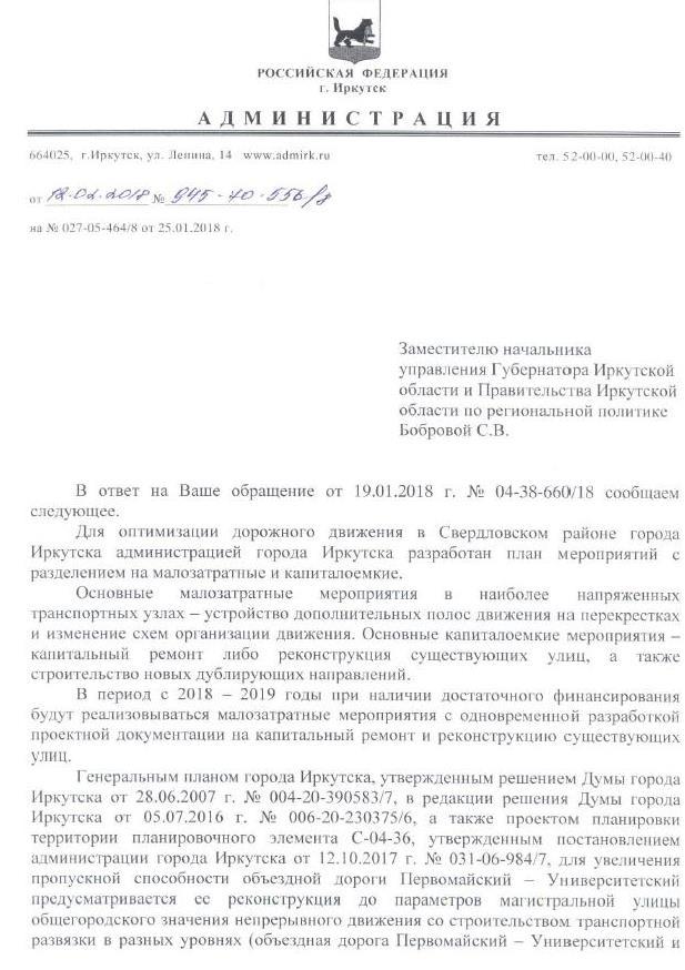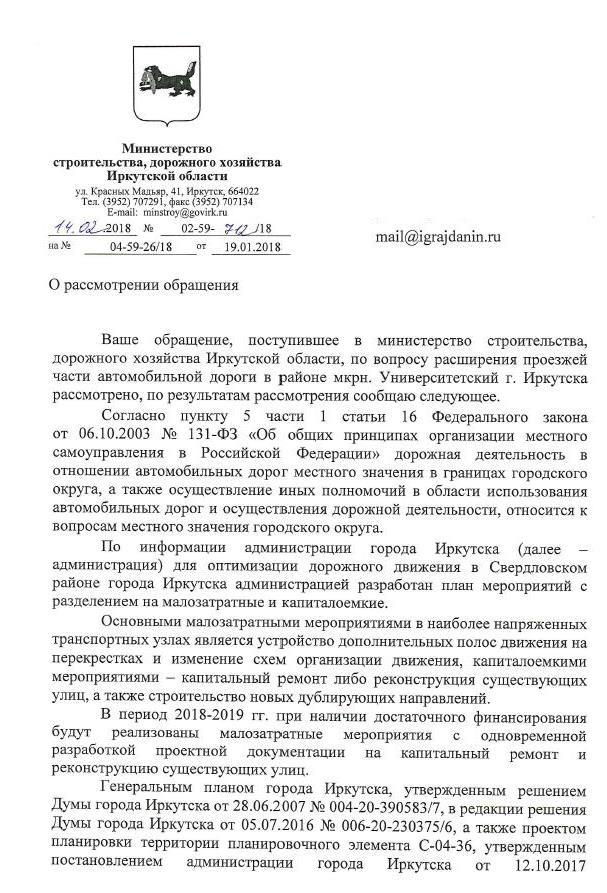 айГражданинОтправлено 18.01.2018: "Министерство строительства, дорожного хозяйства Иркутской области"
