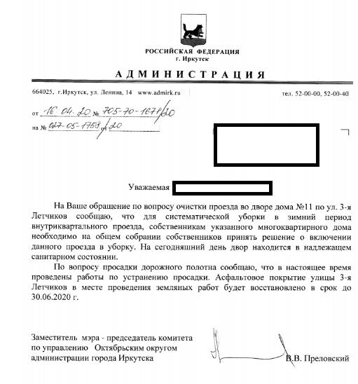 айГражданинОтправлено 02.02.2018: "Администрация города Иркутска"