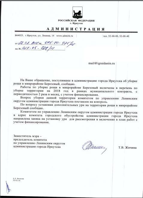 айГражданинОтправлено 02.02.2018: "Администрация города Иркутска"