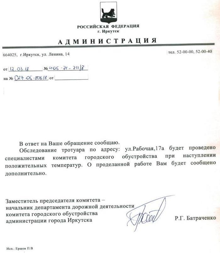 айГражданинОтправлено 07.02.2018: "Администрация города Иркутска"