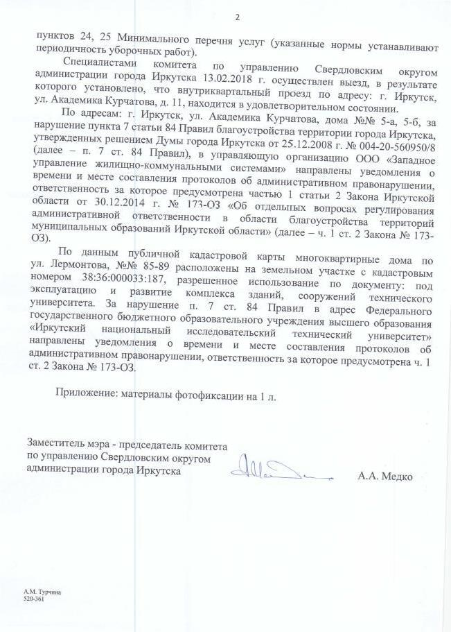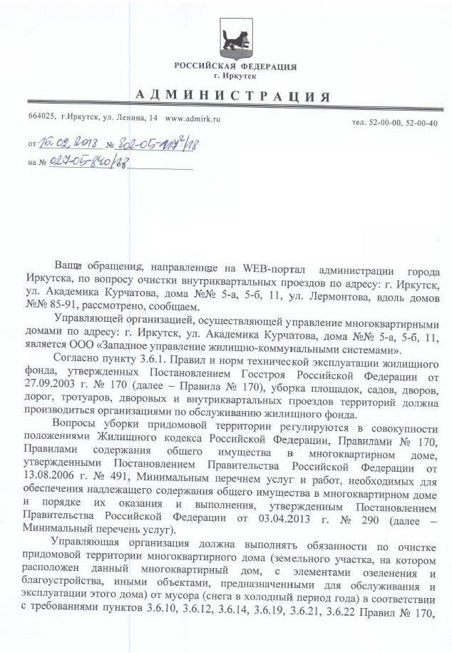 Отправлено 08.02.2018: "Администрация города Иркутска"
