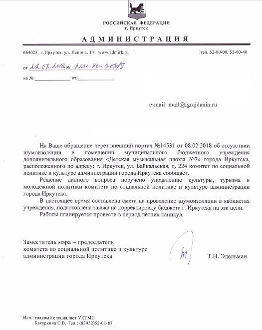айГражданинОтправлено 08.02.2018: "Администрация города Иркутска"
