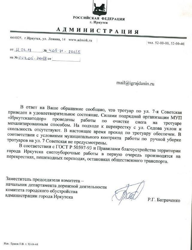 айГражданинОтправлено 24.03.2018: "Администрация города Иркутска"