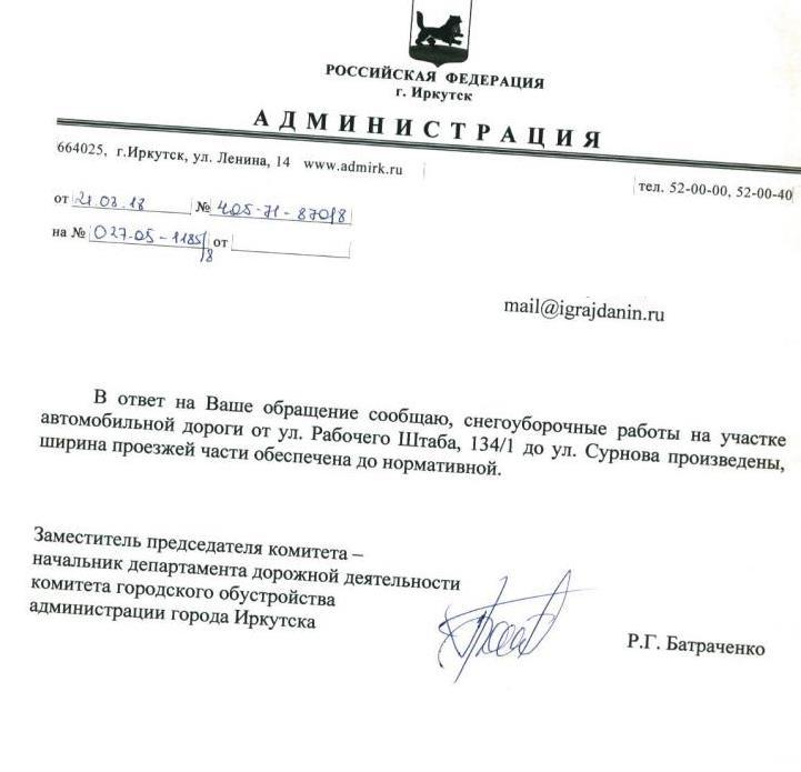 айГражданинОтправлено 21.02.2018: "Администрация города Иркутска"