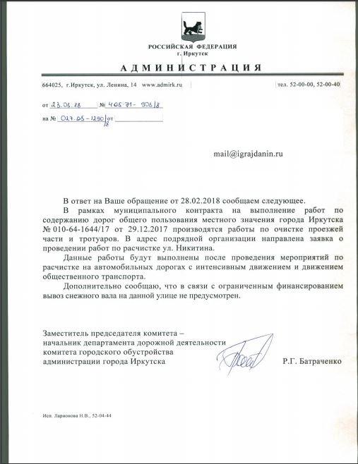 айГражданинОтправлено 28.02.2018: "Администрация города Иркутска"