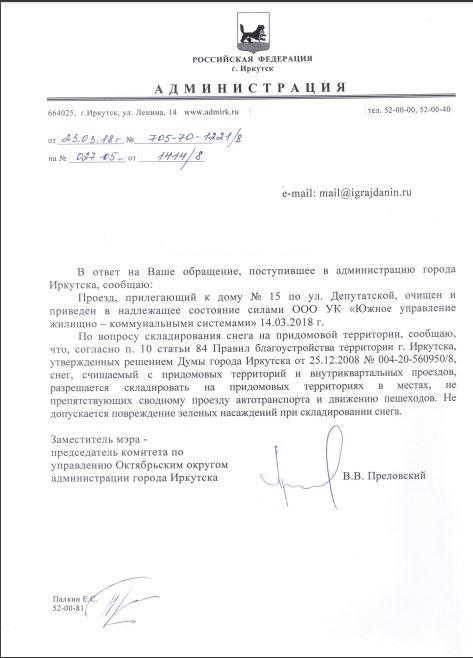 Отправлено 05.03.2018: "Администрация города Иркутска"
