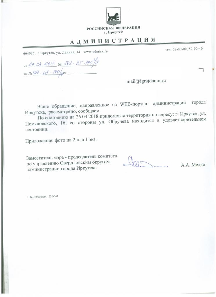 айГражданинОтправлено 05.03.2018: "Администрация города Иркутска"