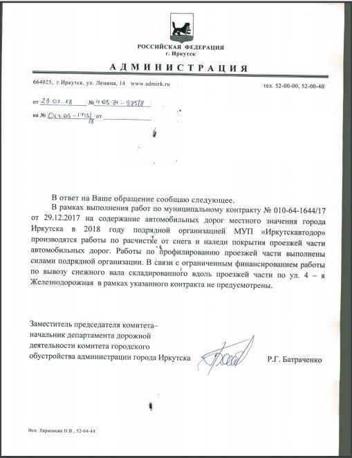 Отправлено 05.03.2018: "Администрация города Иркутска"