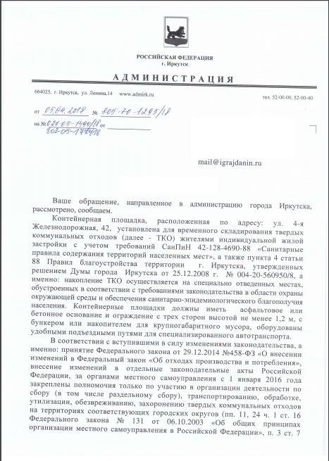 Отправлено 05.03.2018: "Администрация города Иркутска"