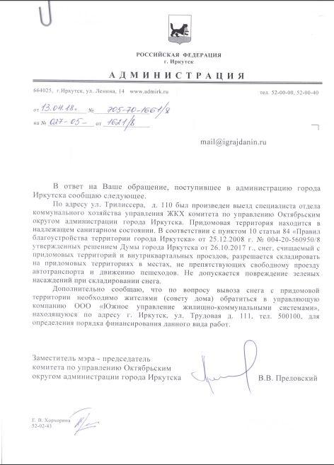 айГражданинОтправлено 14.03.2018: "Администрация города Иркутска"