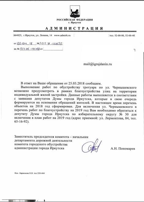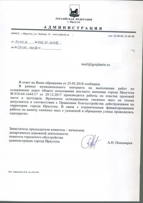 айГражданинОтправлено 25.03.2018: "Администрация города Иркутска"