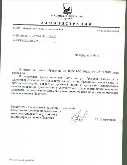 айГражданинОтправлено 20.03.2018: "Администрация города Иркутска"