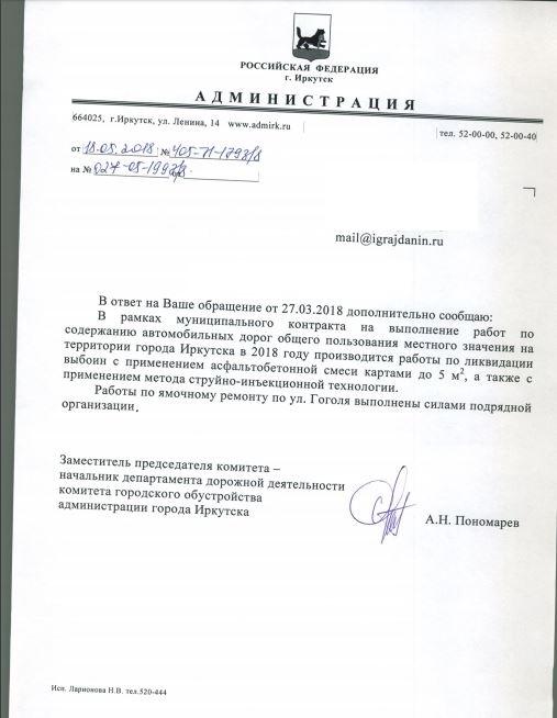 Отправлено 26.03.2018: "Администрация города Иркутска"