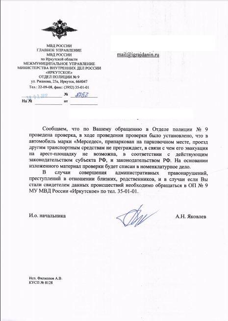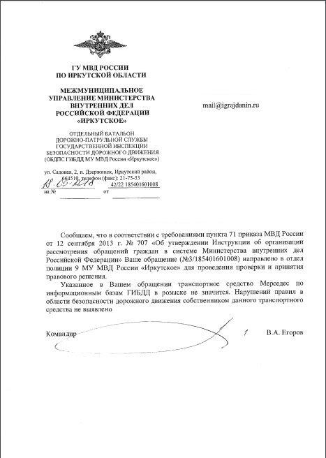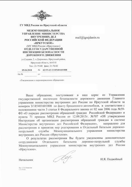 айГражданинОтправлено 03.04.2018: "Управление ГИБДД ГУ МВД России по Иркутской области"