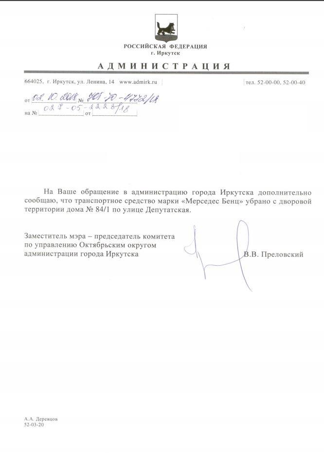 айГражданинОтправлено 03.04.2018: "Администрация города Иркутска"