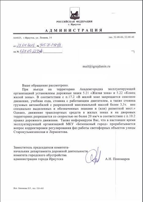 айГражданинОтправлено 03.04.2018: "Администрация города Иркутска"