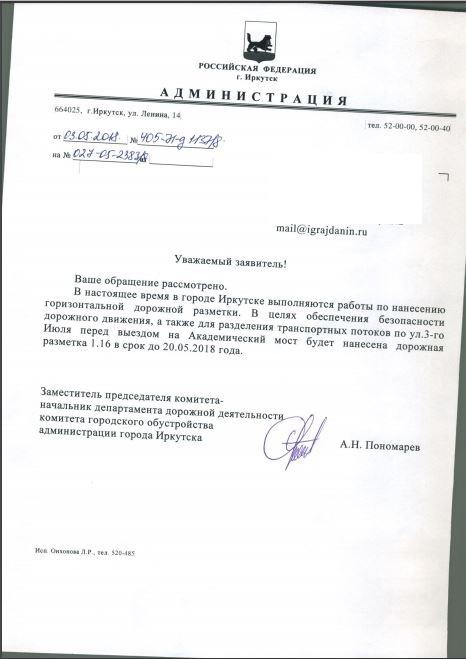 айГражданинОтправлено 09.04.2018: "Администрация города Иркутска"