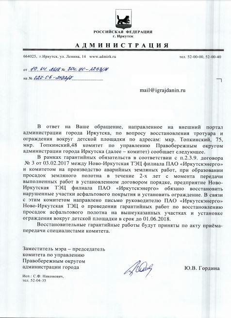 айГражданинОтправлено 09.04.2018: "Администрация города Иркутска"