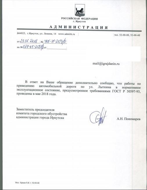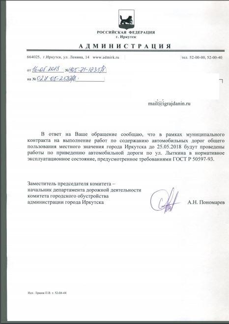 Отправлено 16.04.2018: "Администрация города Иркутска"