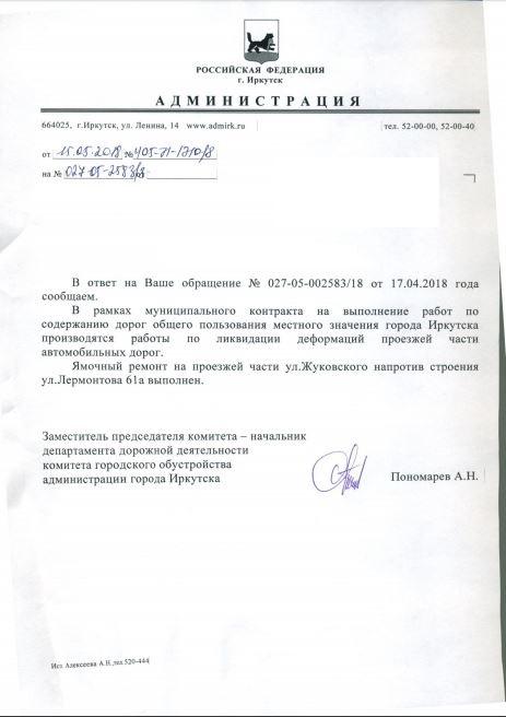 Отправлено 16.04.2018: "Администрация города Иркутска"