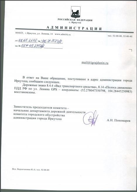 Отправлено 20.04.2018: "Администрация города Иркутска"