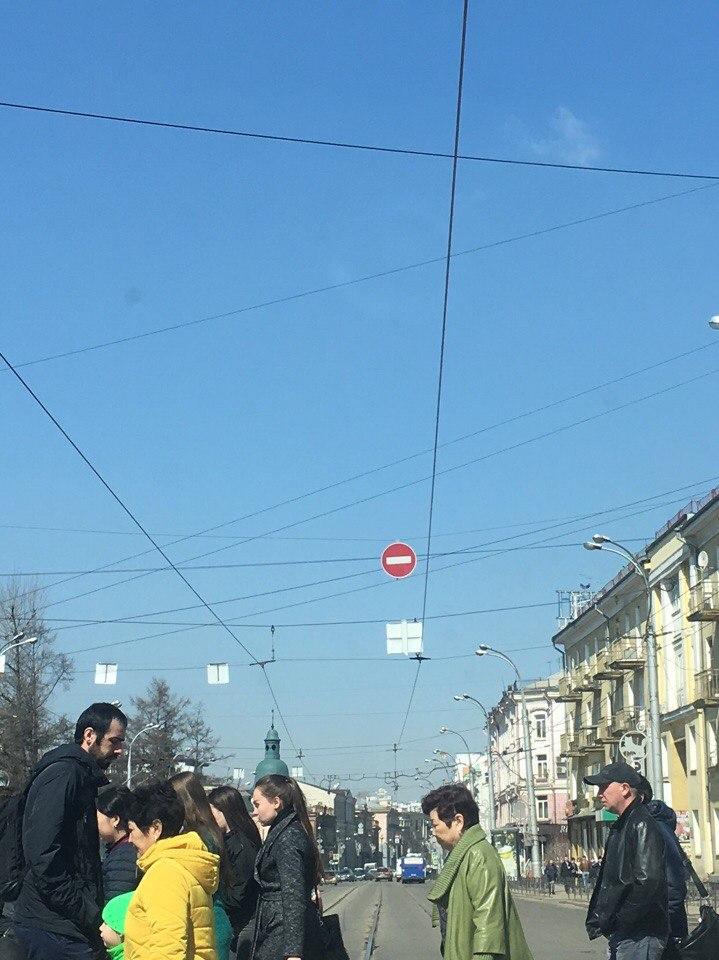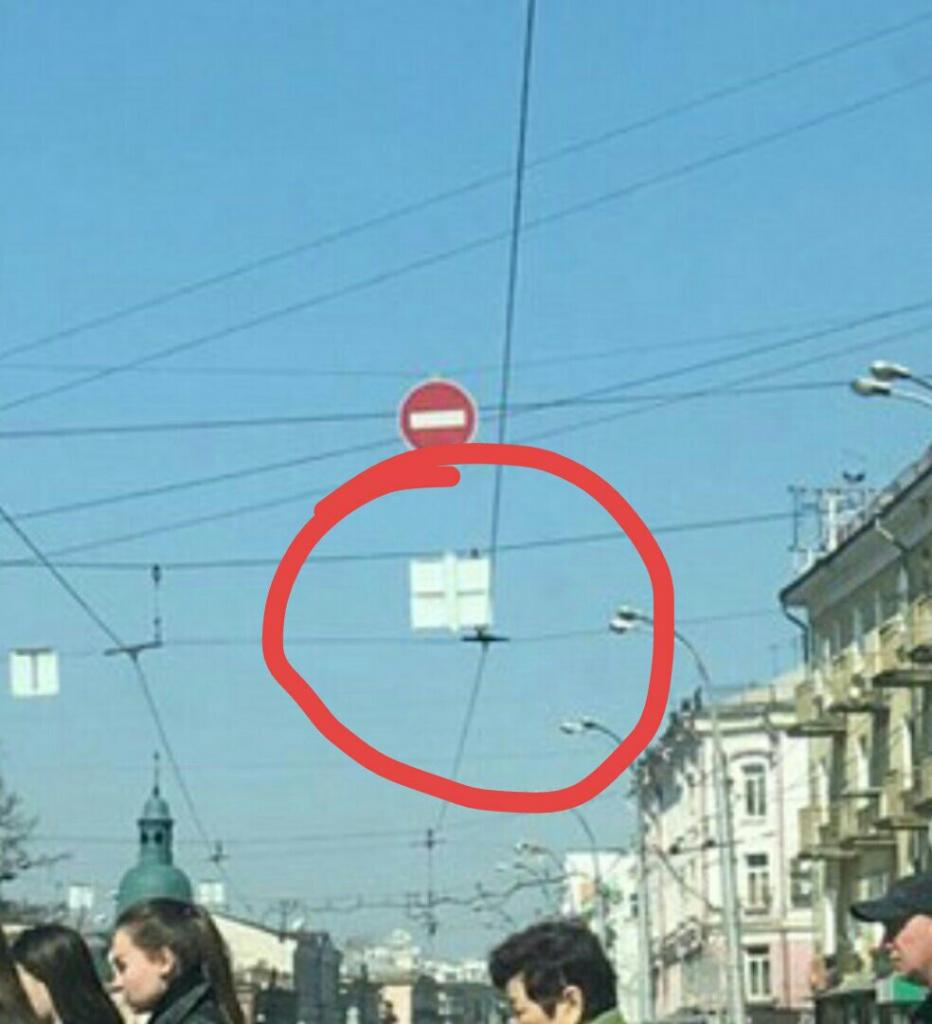 Сдуло ветром верхнее крепление дополнительной таблички, под знаком "кирпич" в направлении движения в строну ул. Карла Маркса (знак висит обратной стороной к водителям. В связи с этим, знак кирпич распространяется на все полосы движения в выше указанном направлении, и вводит в заблуждение участников дорожного движения.