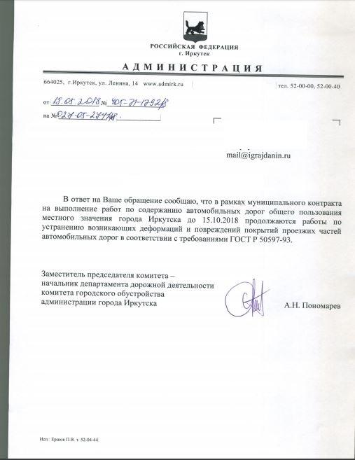 Отправлено 20.04.2018: "Администрация города Иркутска"