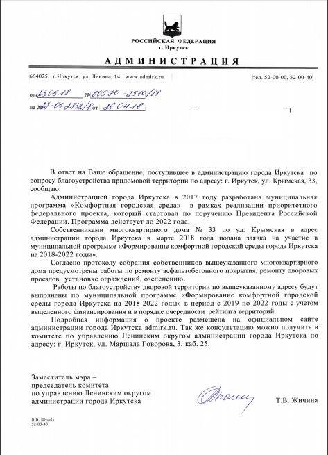 Отправлено 23.04.2018: "Администрация города Иркутска"