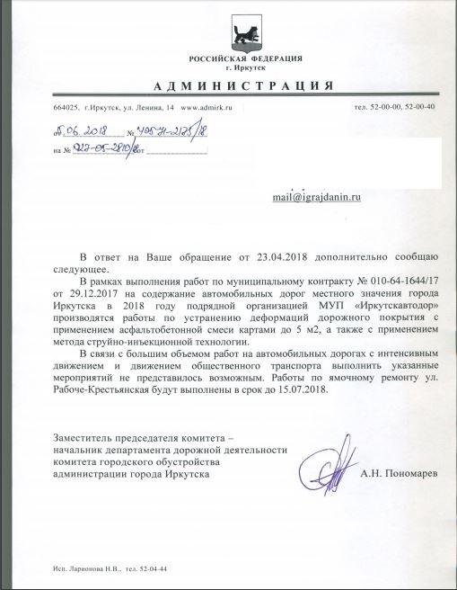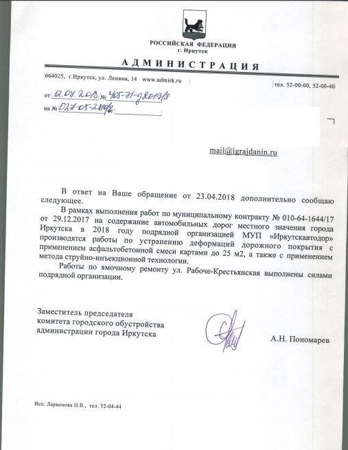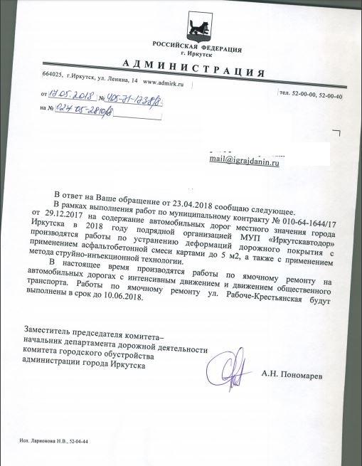 айГражданинОтправлено 23.04.2018: "Администрация города Иркутска"