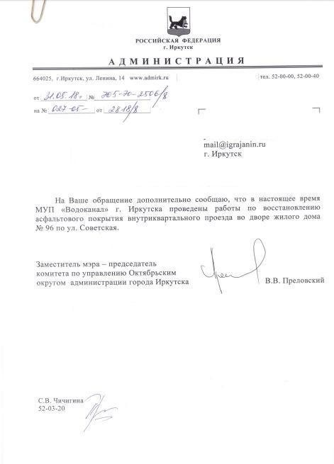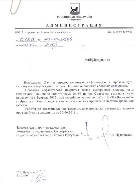 Отправлено 23.04.2018: "Администрация города Иркутска"