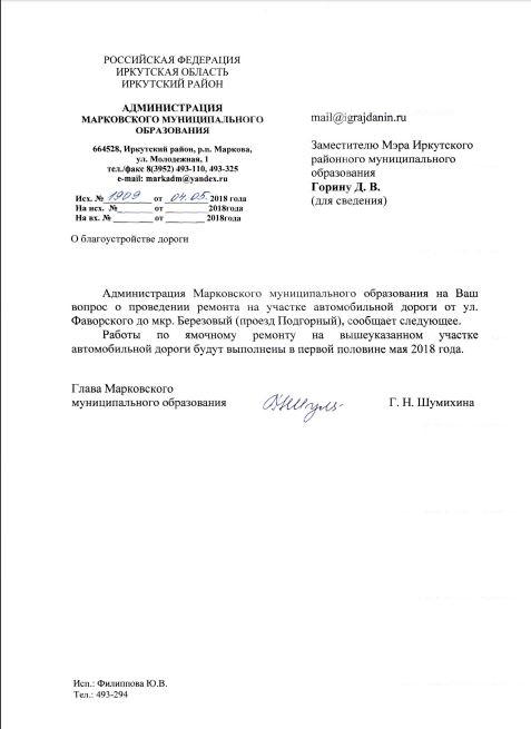 айГражданинОтправлено 23.04.2018: "Администрация Иркутского района"