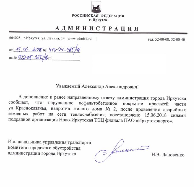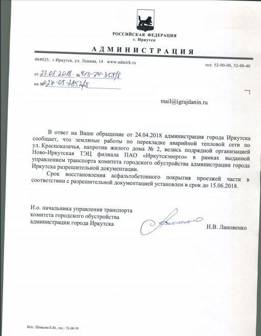 айГражданинОтправлено 24.04.2018: "Администрация города Иркутска"