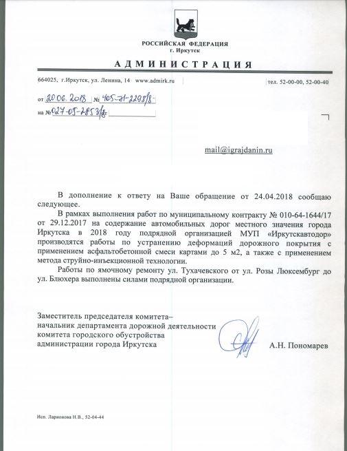 айГражданинОтправлено 24.04.2018: "Администрация города Иркутска"