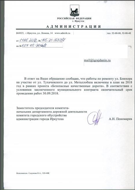 айГражданинОтправлено 03.05.2018: "Администрация города Иркутска"