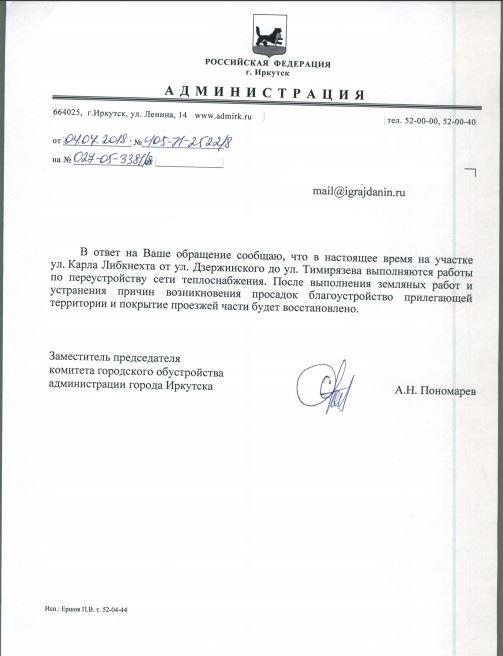 айГражданинОтправлено 16.05.2018: "Администрация города Иркутска"