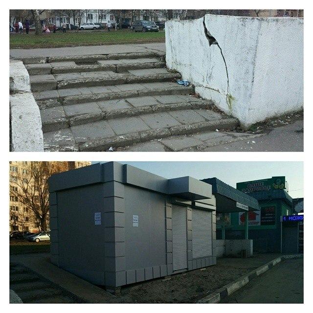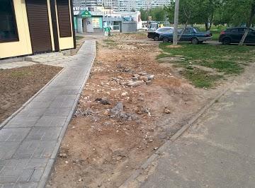 На остановке, возле магазина Здоровье, возвели очередную палатку! Строительный мусор, оставшийся после водружения железного короба, технично разбросали по некогда зеленому газону на против дома №1 по улице Гаврилова. Прошу убрать строительный шлам  или засыпать его землей, провести рекультивацию травянистого покрытия.